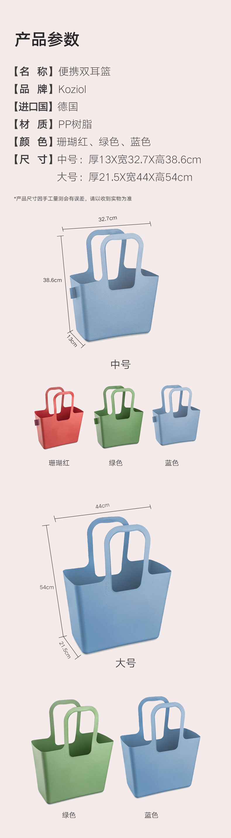 便携双耳篮 中号 珊瑚红 130*327*386mm