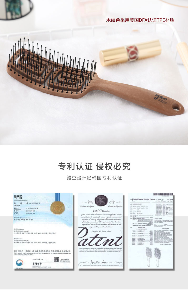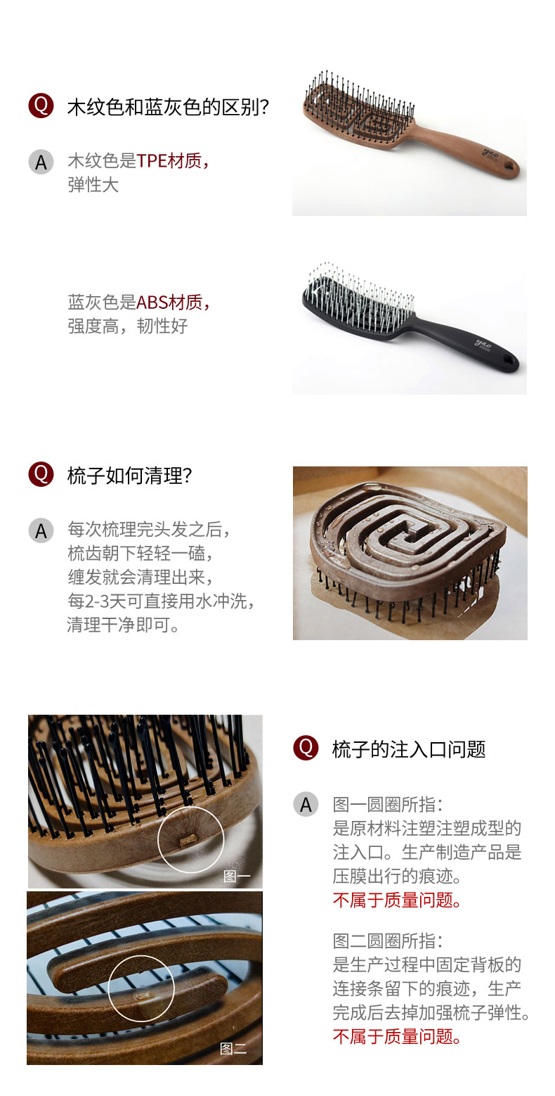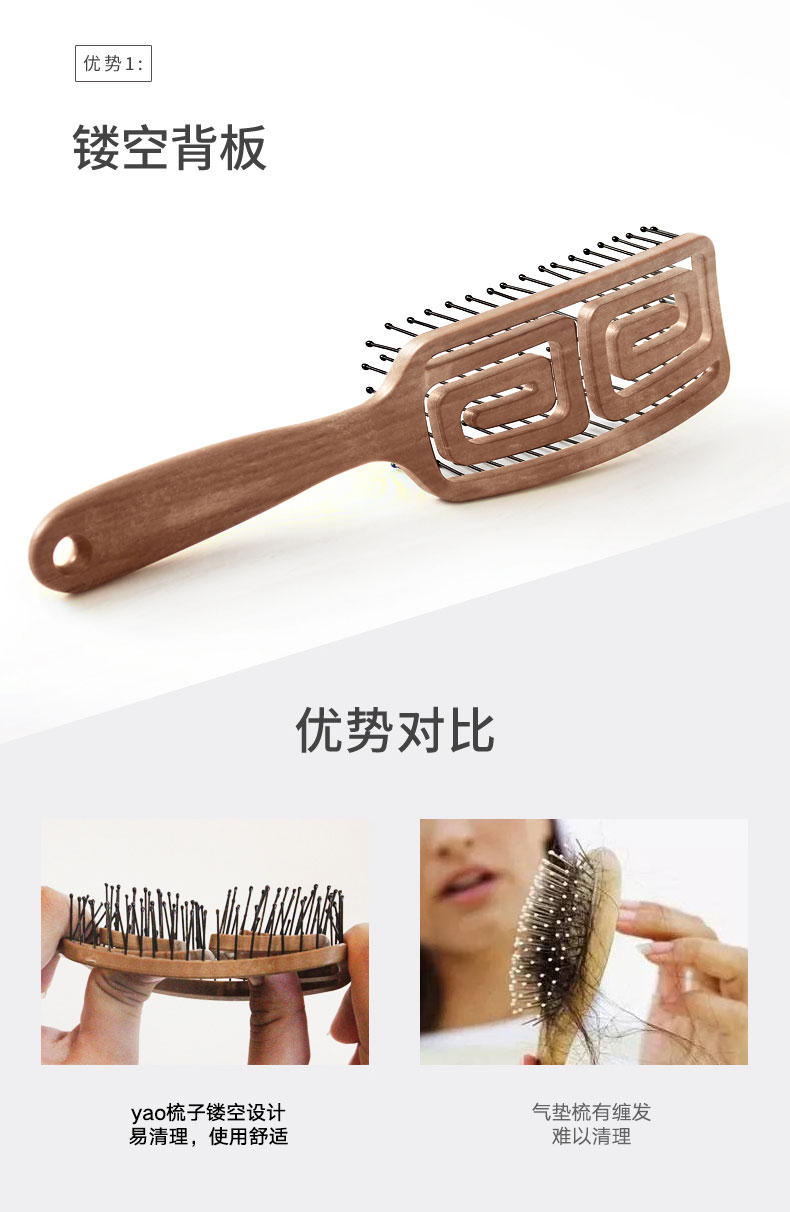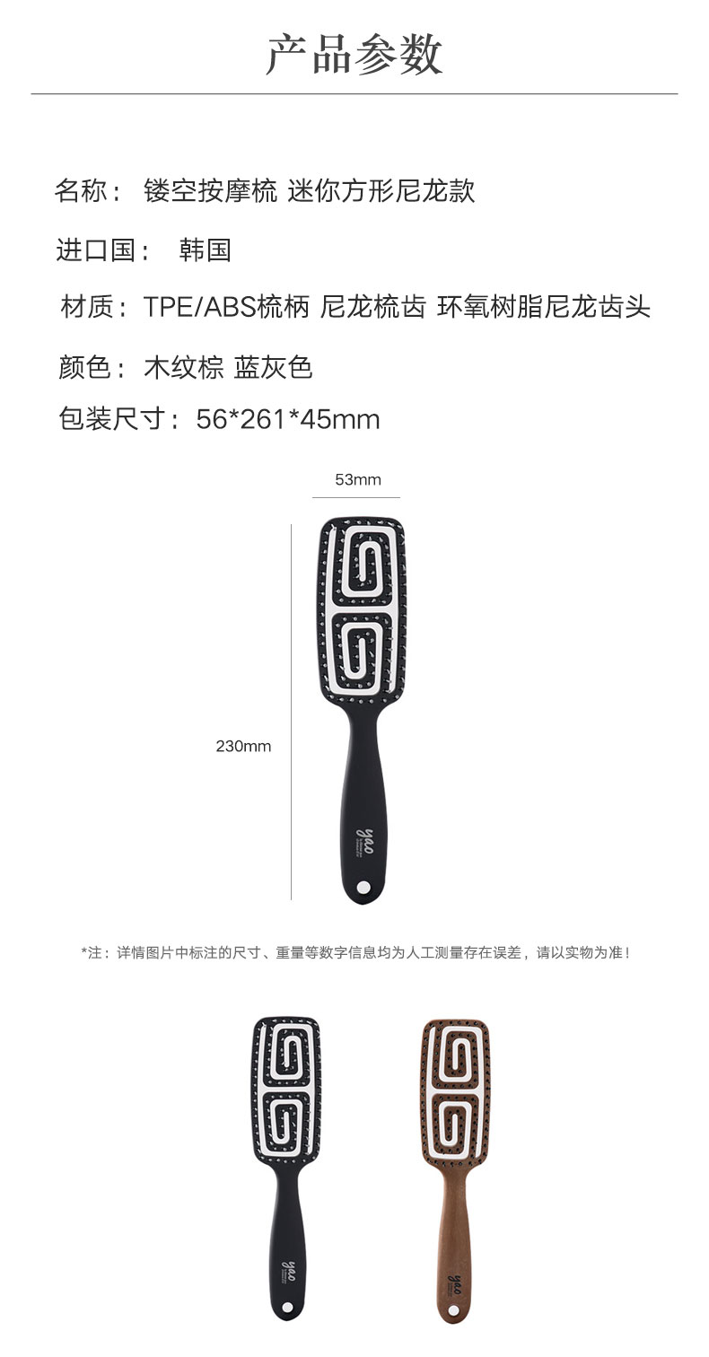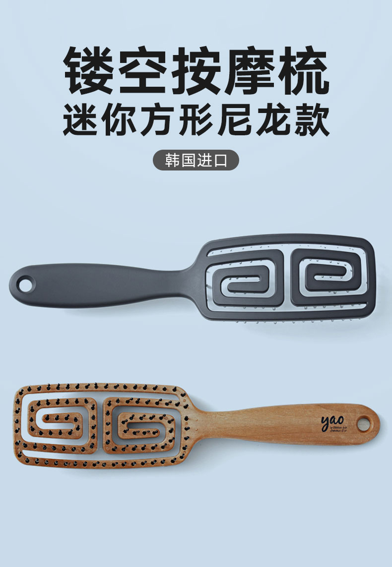 镂空按摩梳 迷你方形尼龙款 蓝灰色