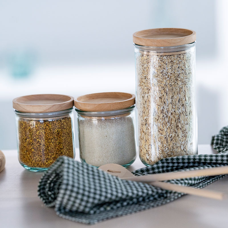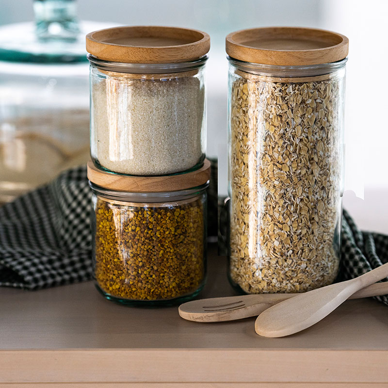简约木塞玻璃储物罐三件套 820ml+350ml*2