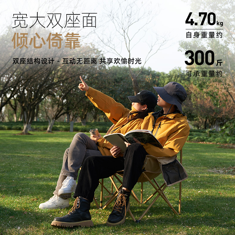 双人月亮椅便携折叠椅 细沙黄