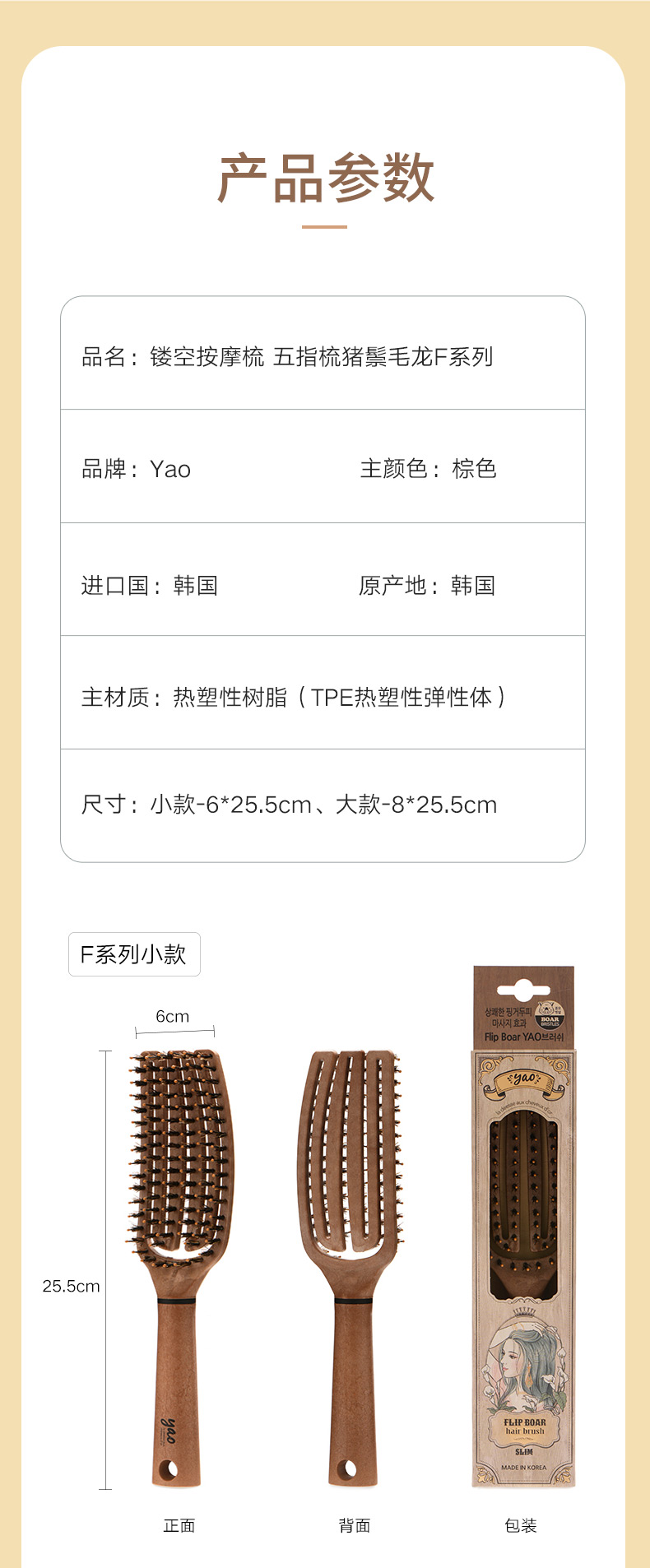 镂空按摩梳 五指梳猪鬃毛龙F系列小款