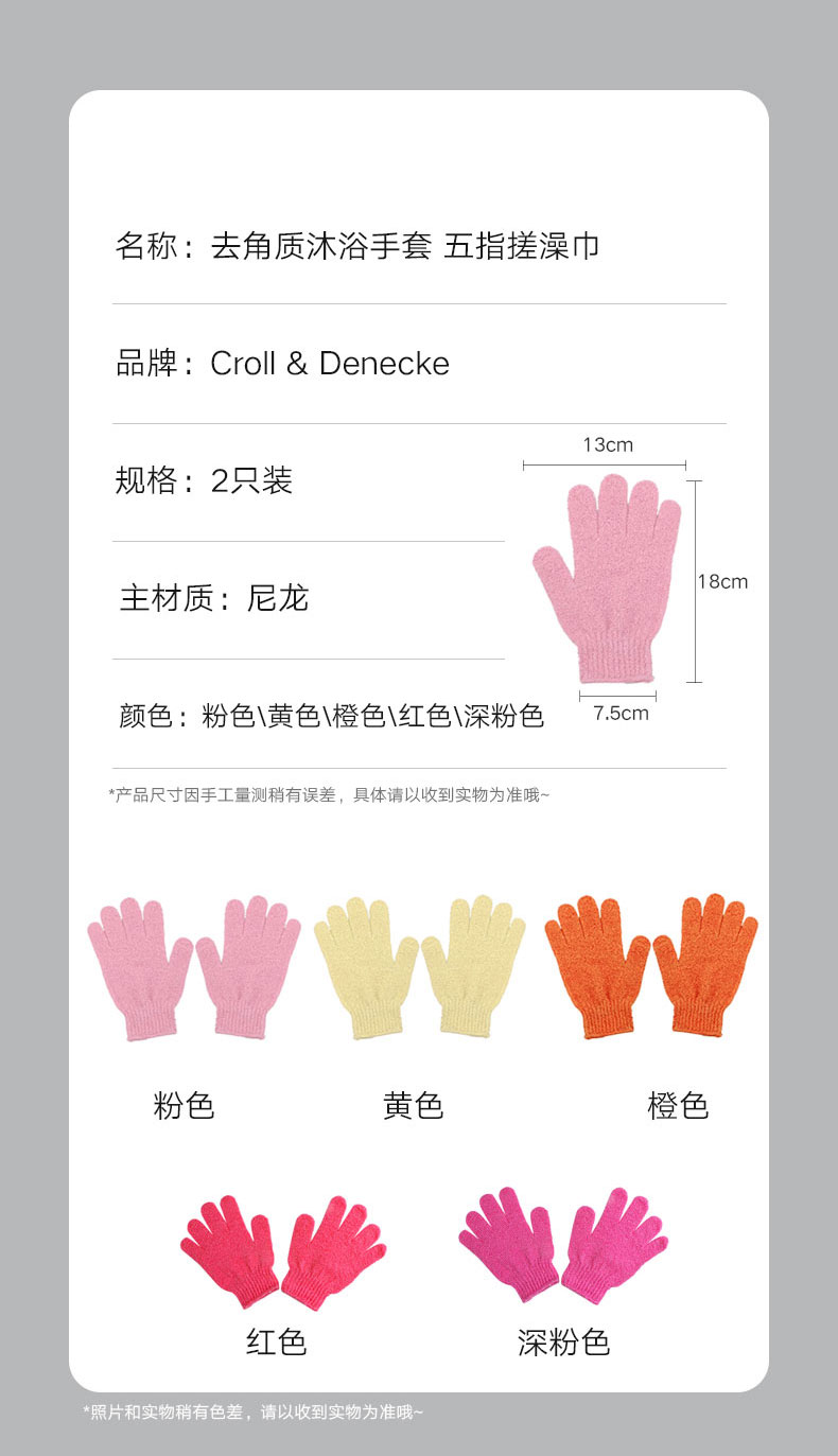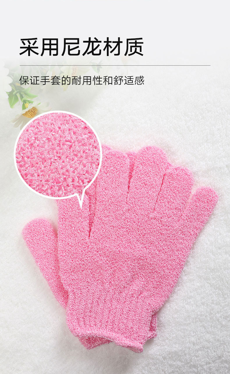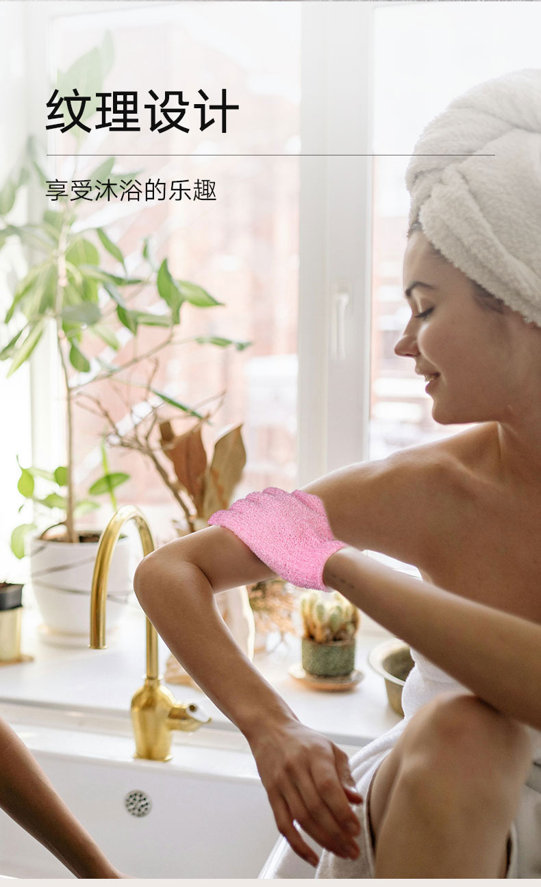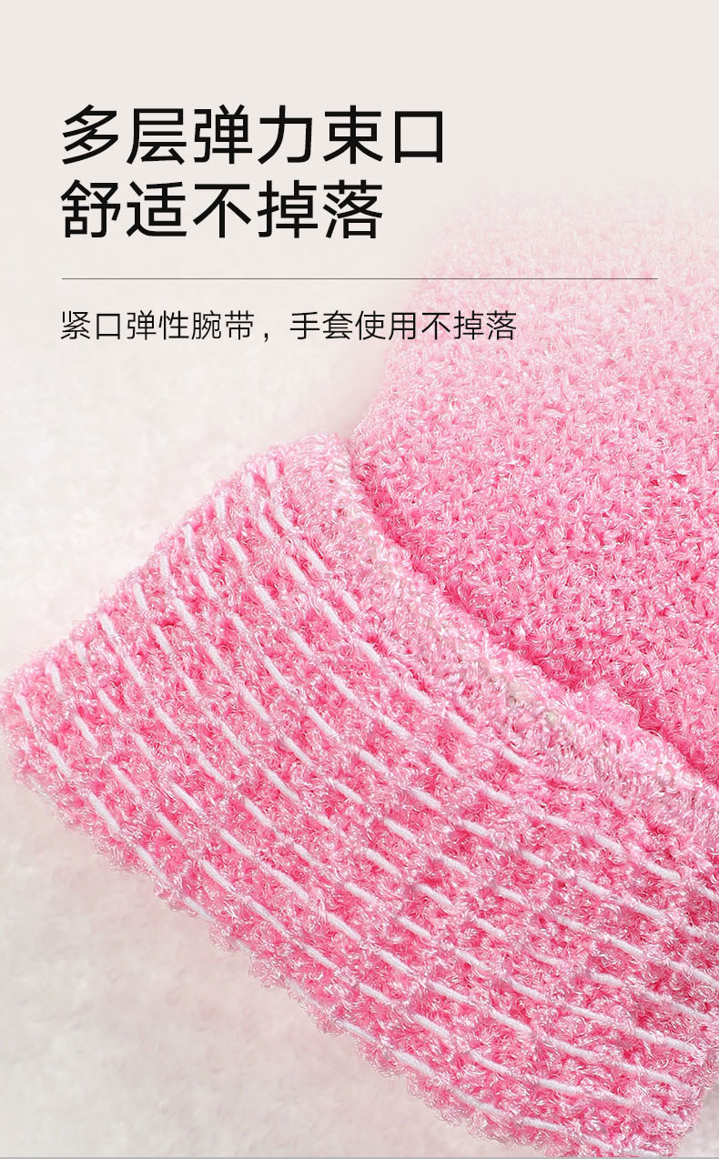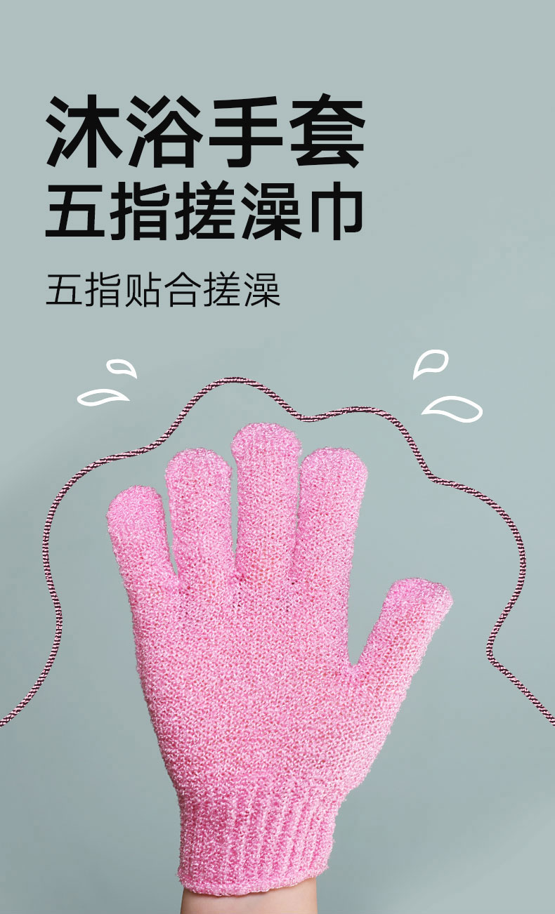 去角质沐浴手套 五指搓澡巾 粉色 2只装