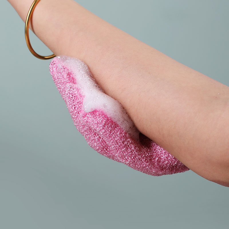 去角质沐浴手套 五指搓澡巾 粉色 2只装