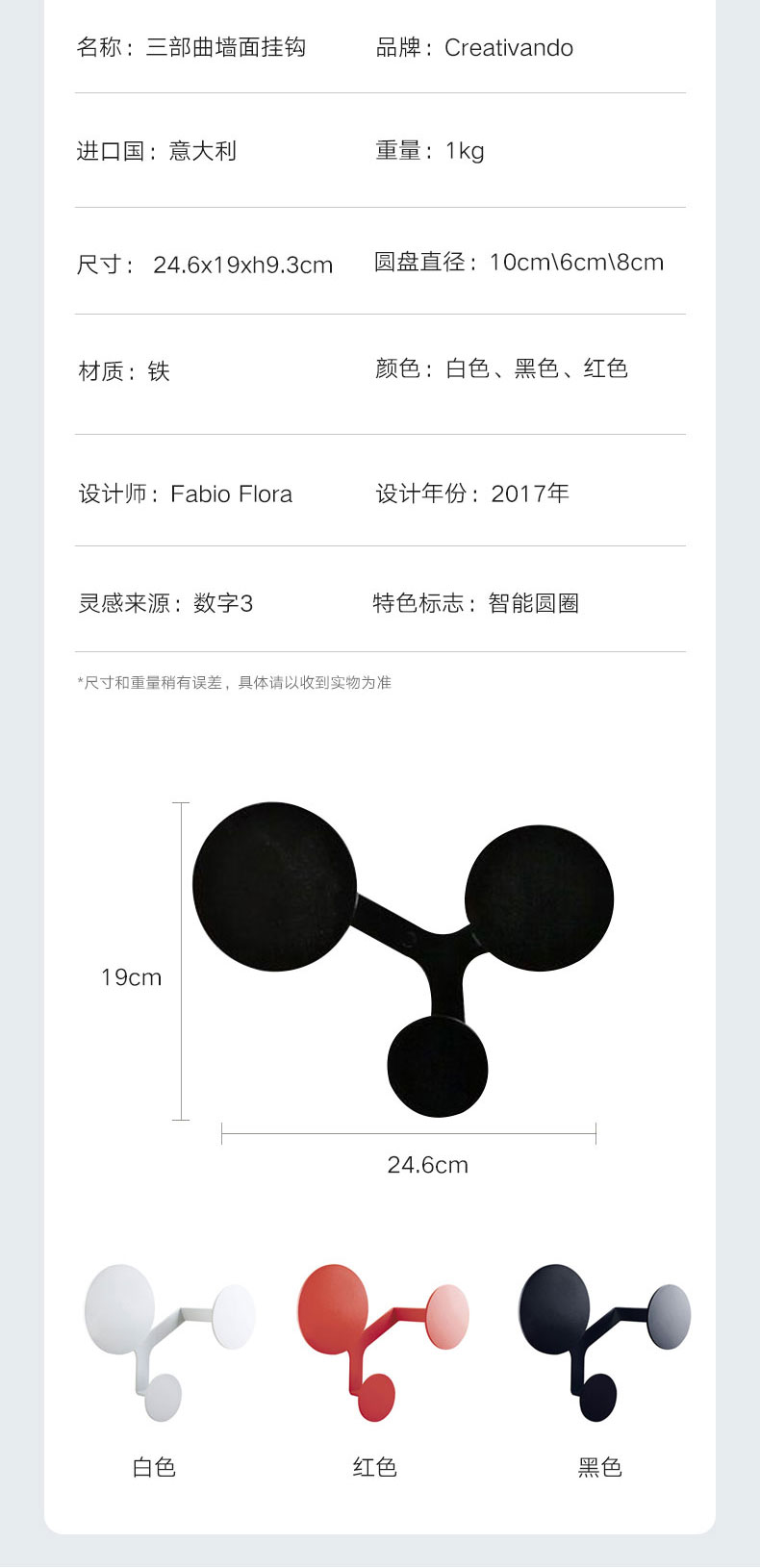 三部曲墙面挂钩 黑色 24.6x19xh9.3cm