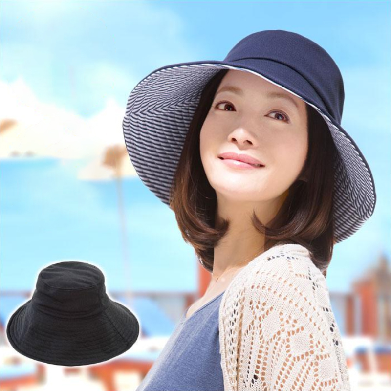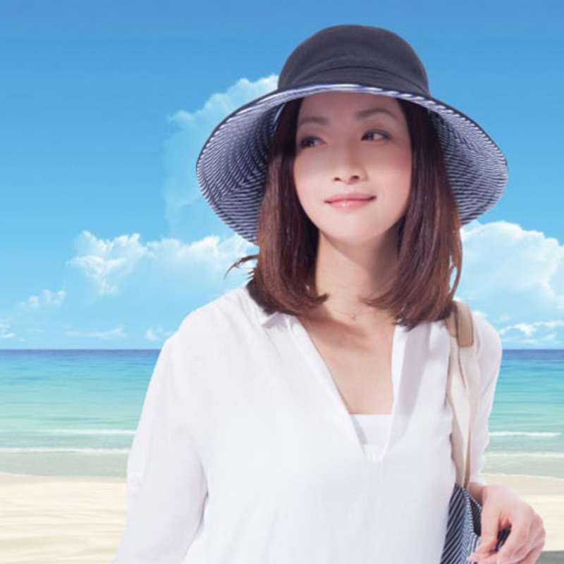 防紫外线双面帽 蓝米双色