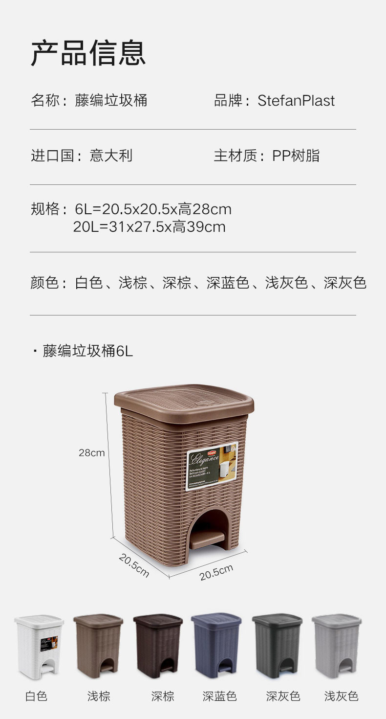 藤编垃圾桶6L 浅灰色