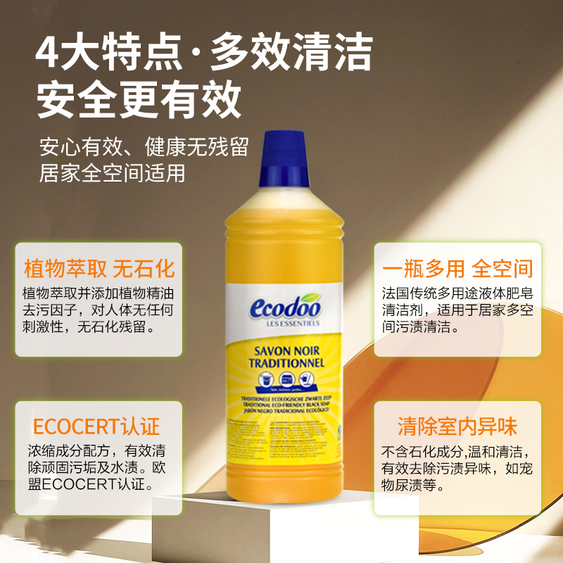 有机低泡多用途黑肥皂地板宠物清洁剂 1L