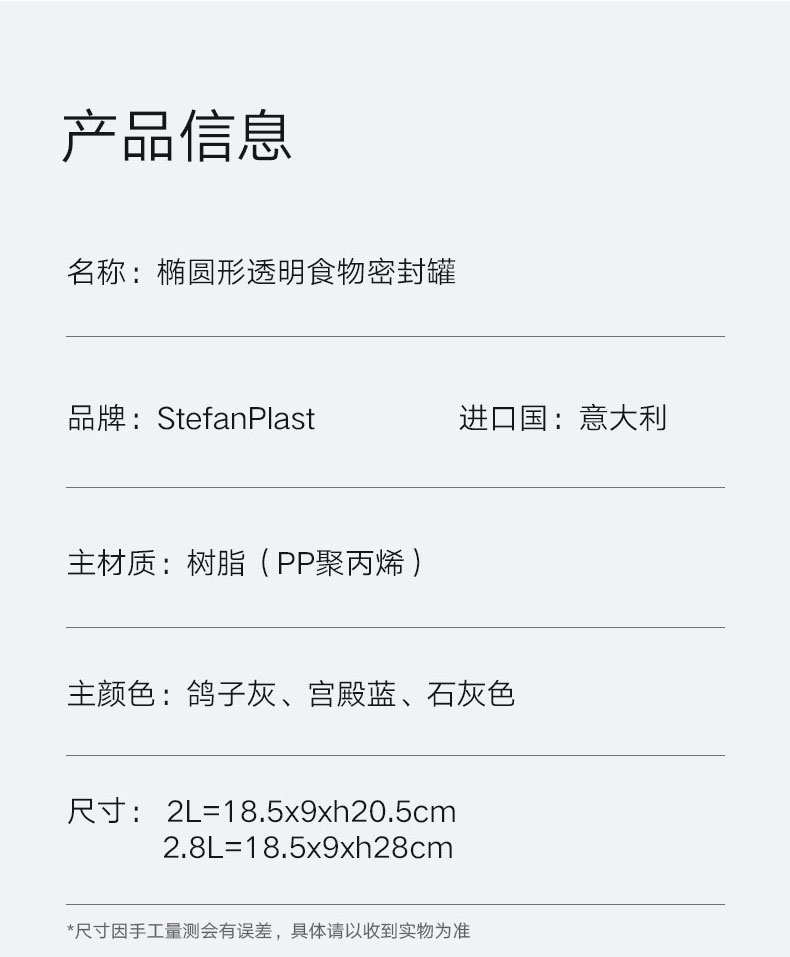 长方形透明食物密封罐 石灰色 Tosca 0.7L