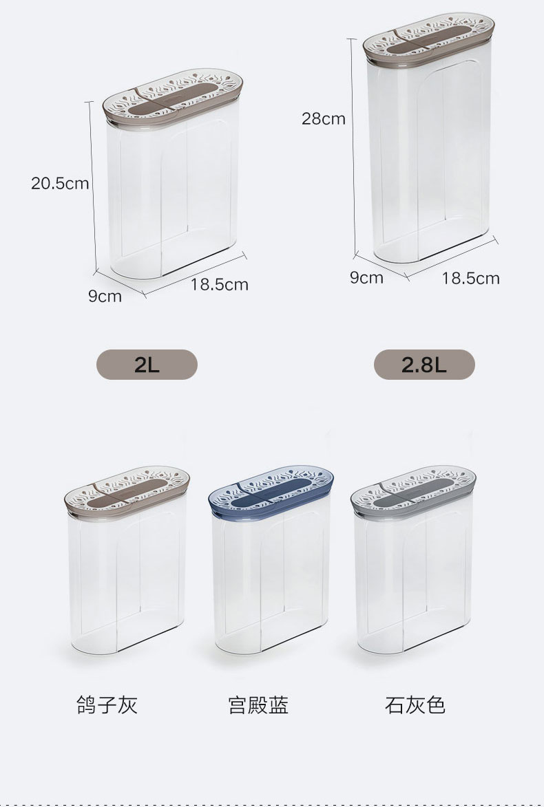 长方形透明食物密封罐 鸽子灰 Tosca 2.2L