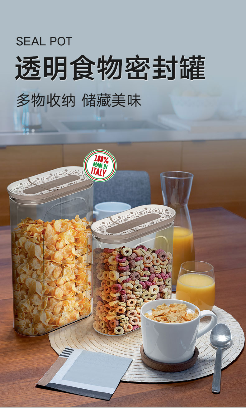 长方形透明食物密封罐 石灰色 Tosca 2.2L