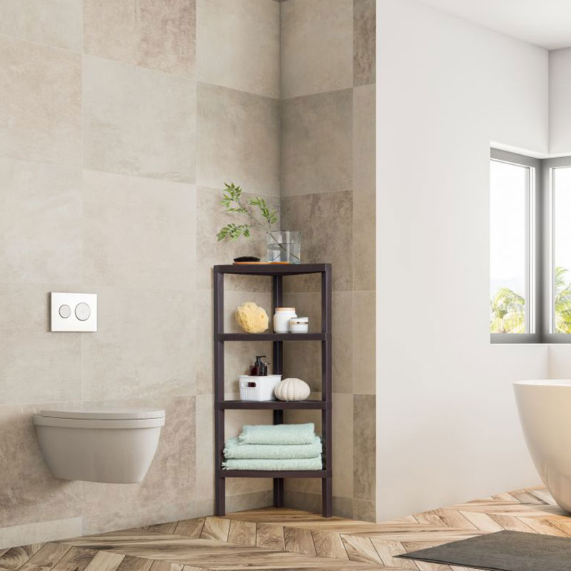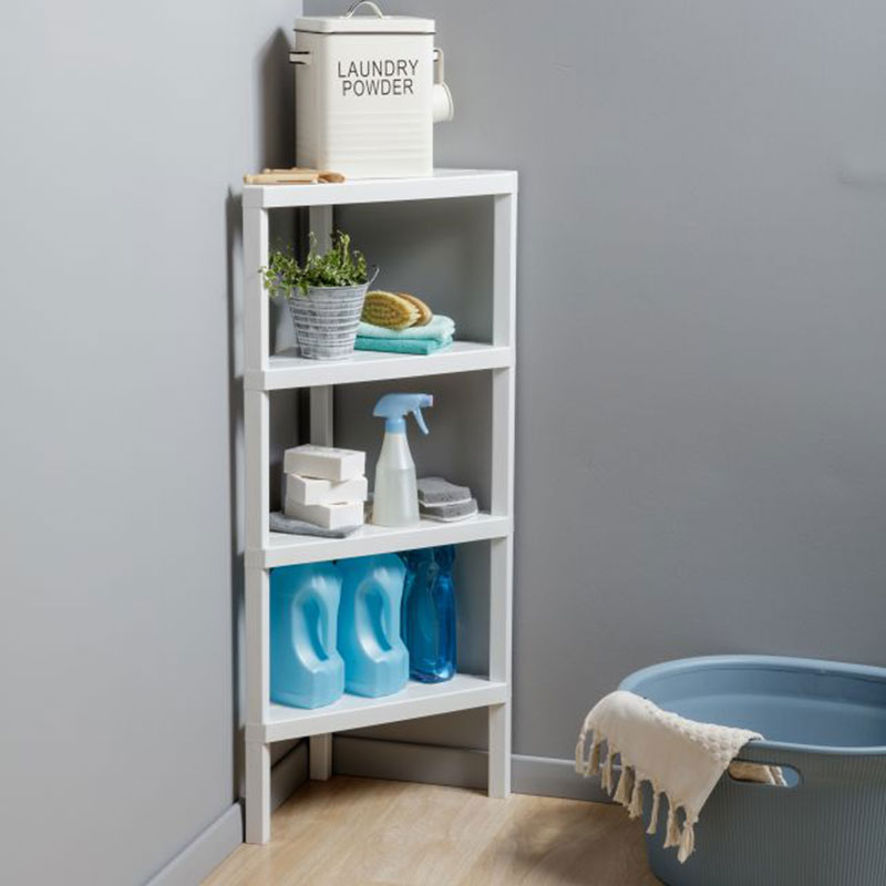 木纹墙角四层收纳架 LOMBOK 白色
