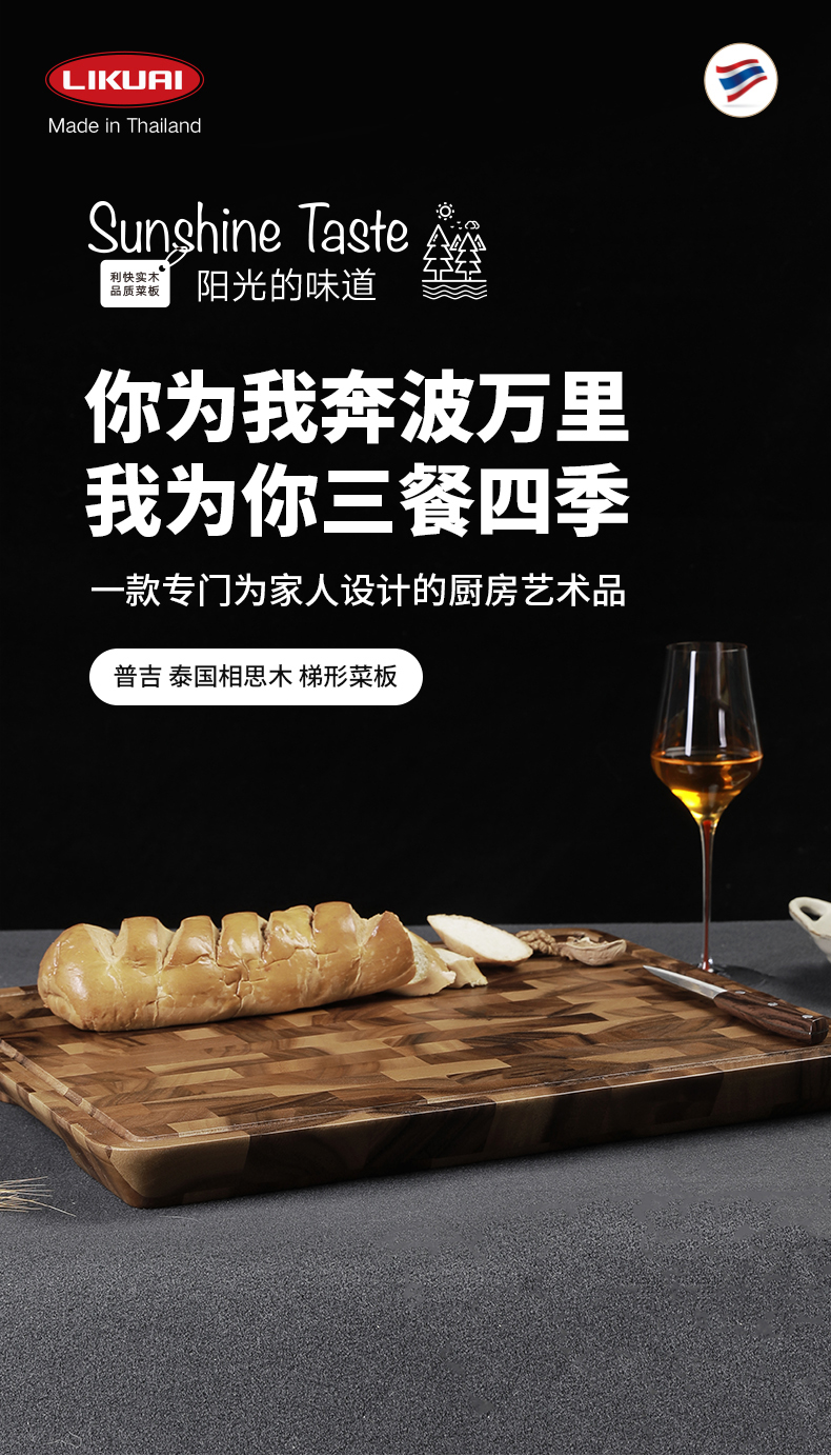 普吉 泰国相思木 梯形菜板小号40*30*4cm