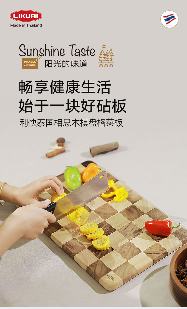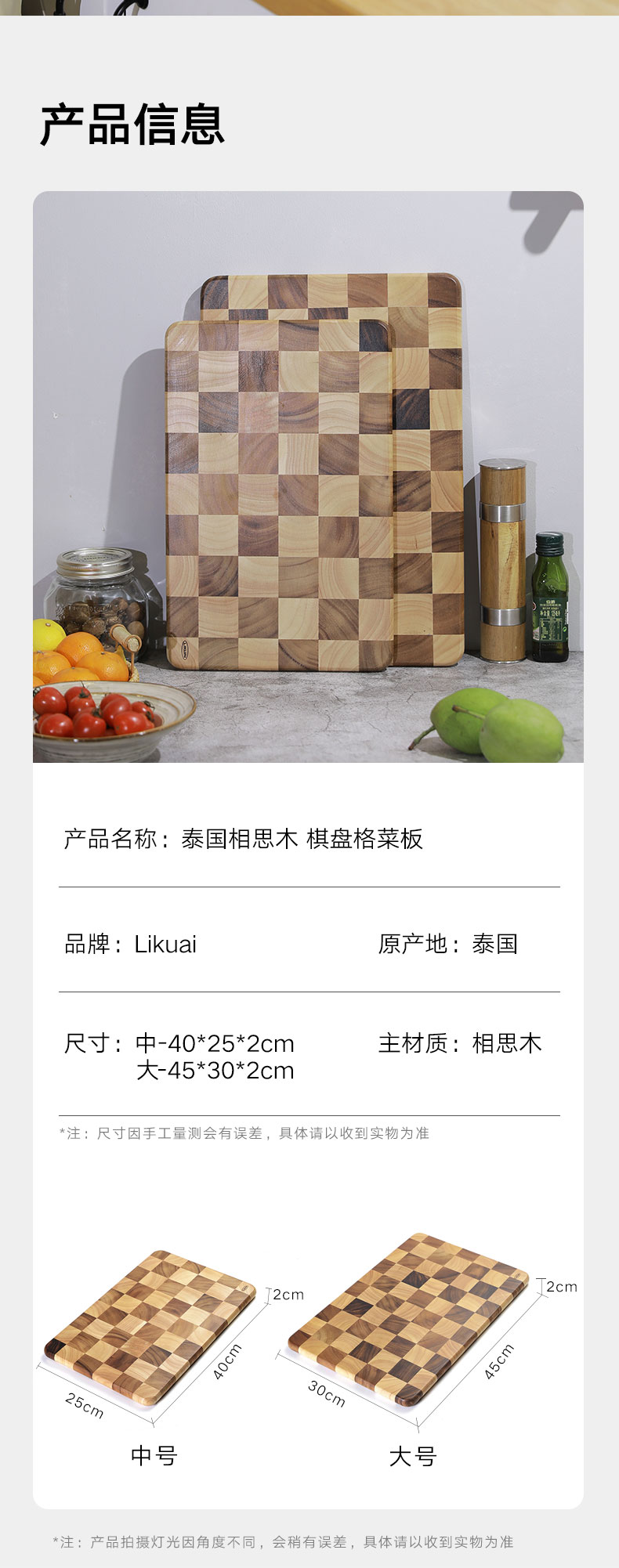 棋盘格 长方形泰国相思木菜板中号40*26*2cm