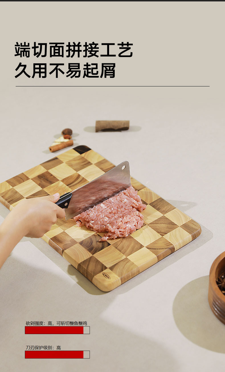 棋盘格 长方形泰国相思木菜板大号45*30*2cm