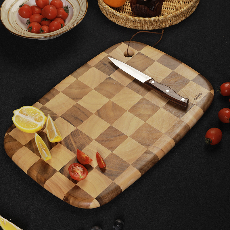 棋盘格 椭圆形泰国相思木菜板中号32*22*2cm