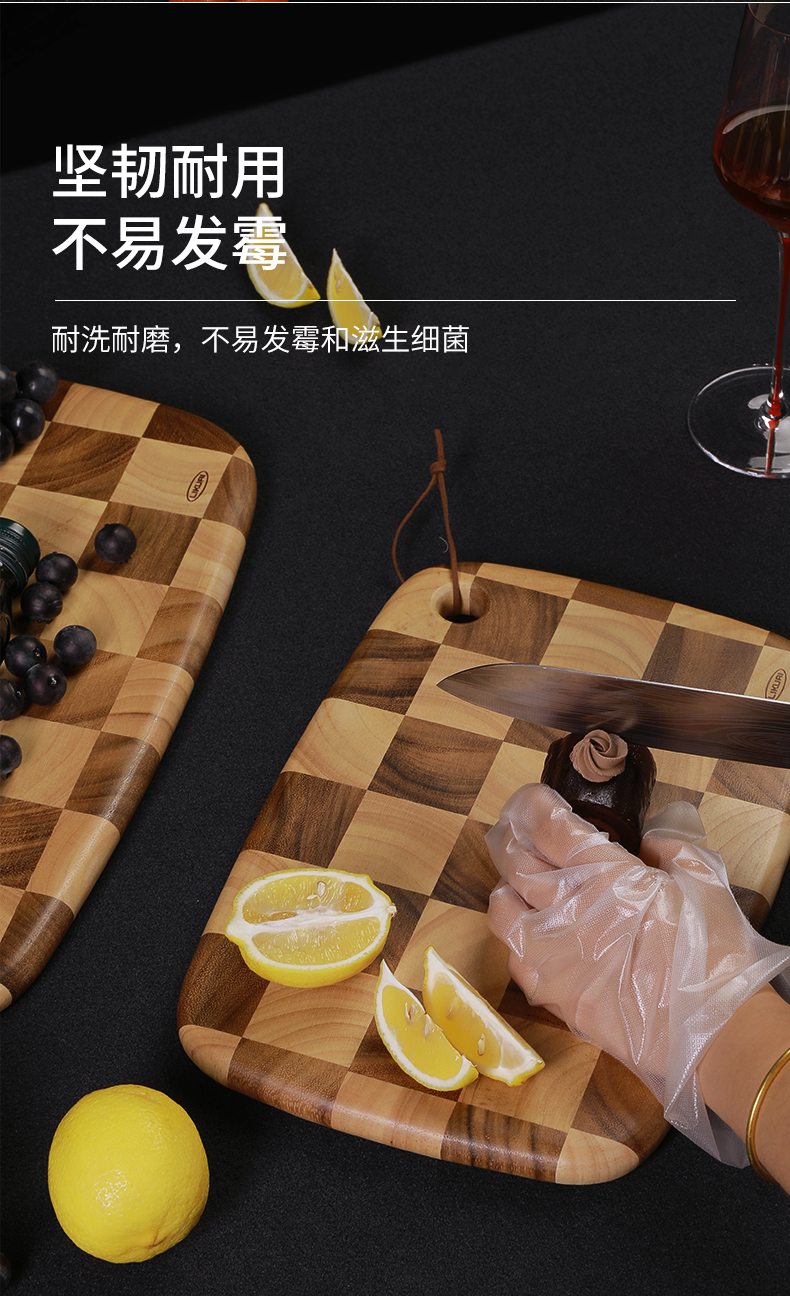 棋盘格 椭圆形泰国相思木菜板中号32*22*2cm