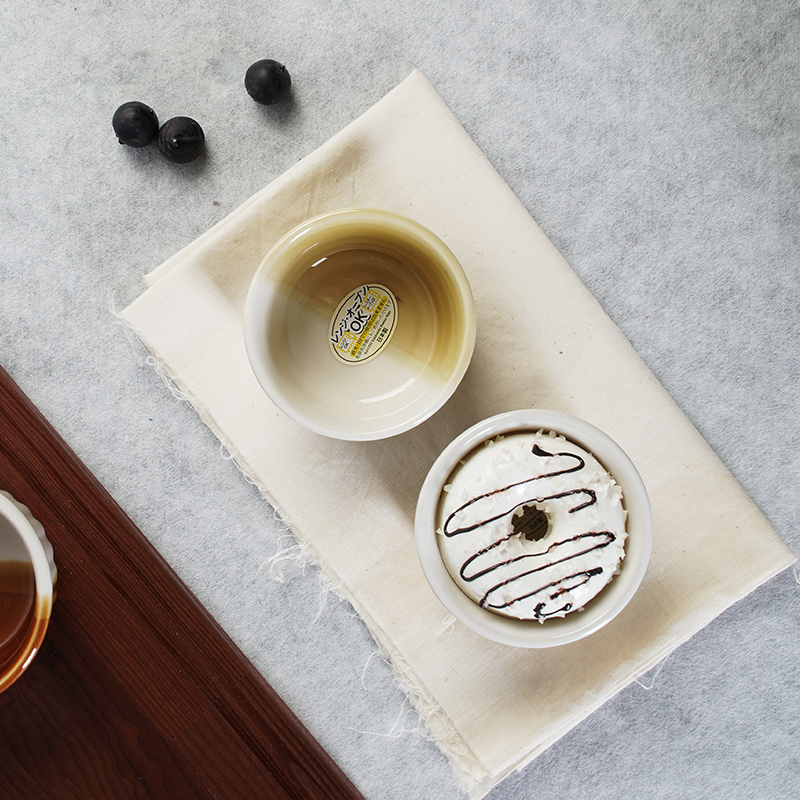 万古烧半瓷器小碗 拼色白+绿