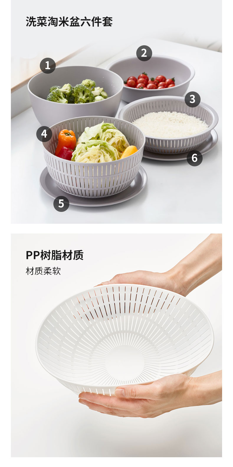 洗菜淘米盆六件套 米色