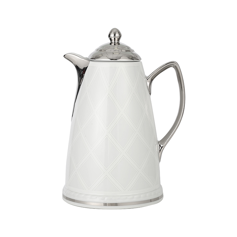 陶瓷保温壶 菱形浮雕白色 1L