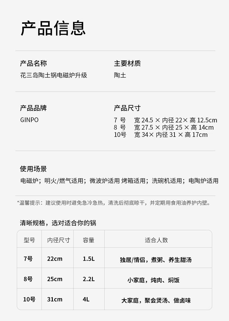花三岛陶土锅电磁炉升级10号4L 34 cmx H17cm