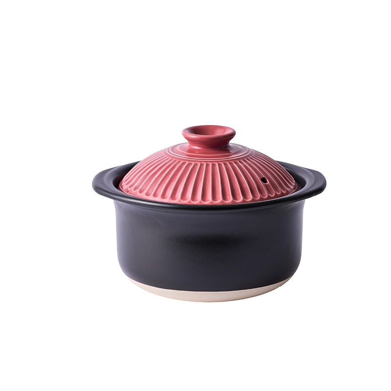 菊花多功能陶土锅 2合 1.2L 粉红色 21.5cm x H15cm