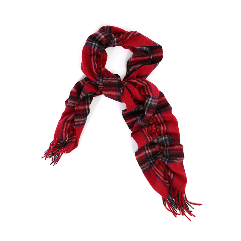 褶皱格纹羊毛围巾 酒红色