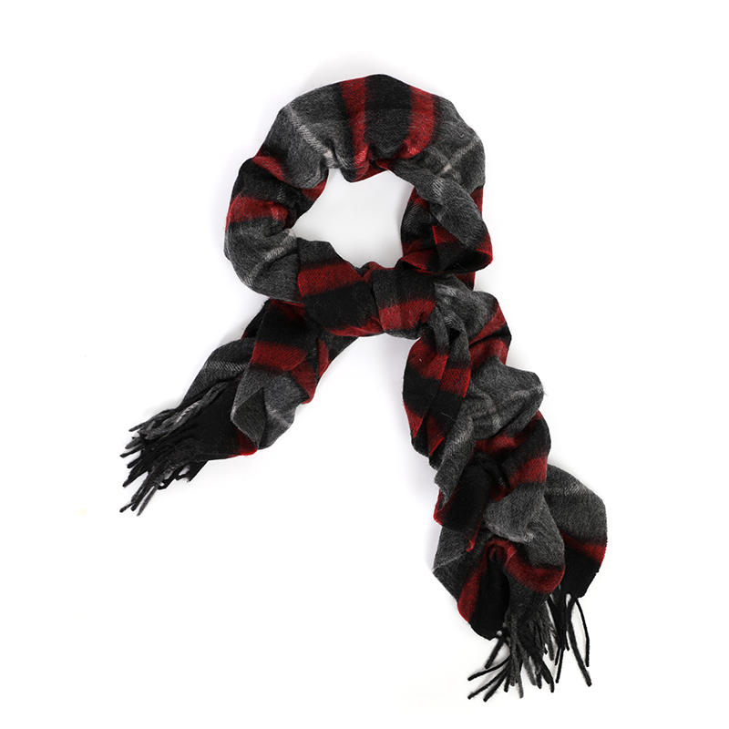 褶皱格纹羊毛围巾 酒红灰色
