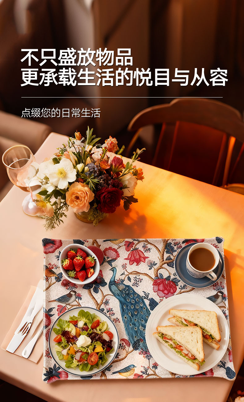 法兰西托盘 孔雀盛殿 粉色 46*36 CM
