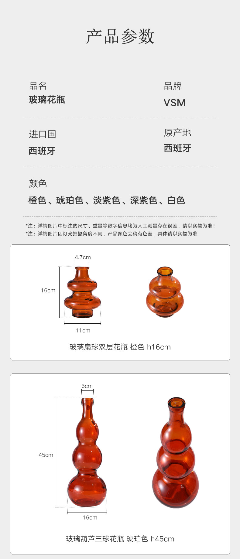 玻璃扁球三层花瓶 淡紫色 h21.5cm