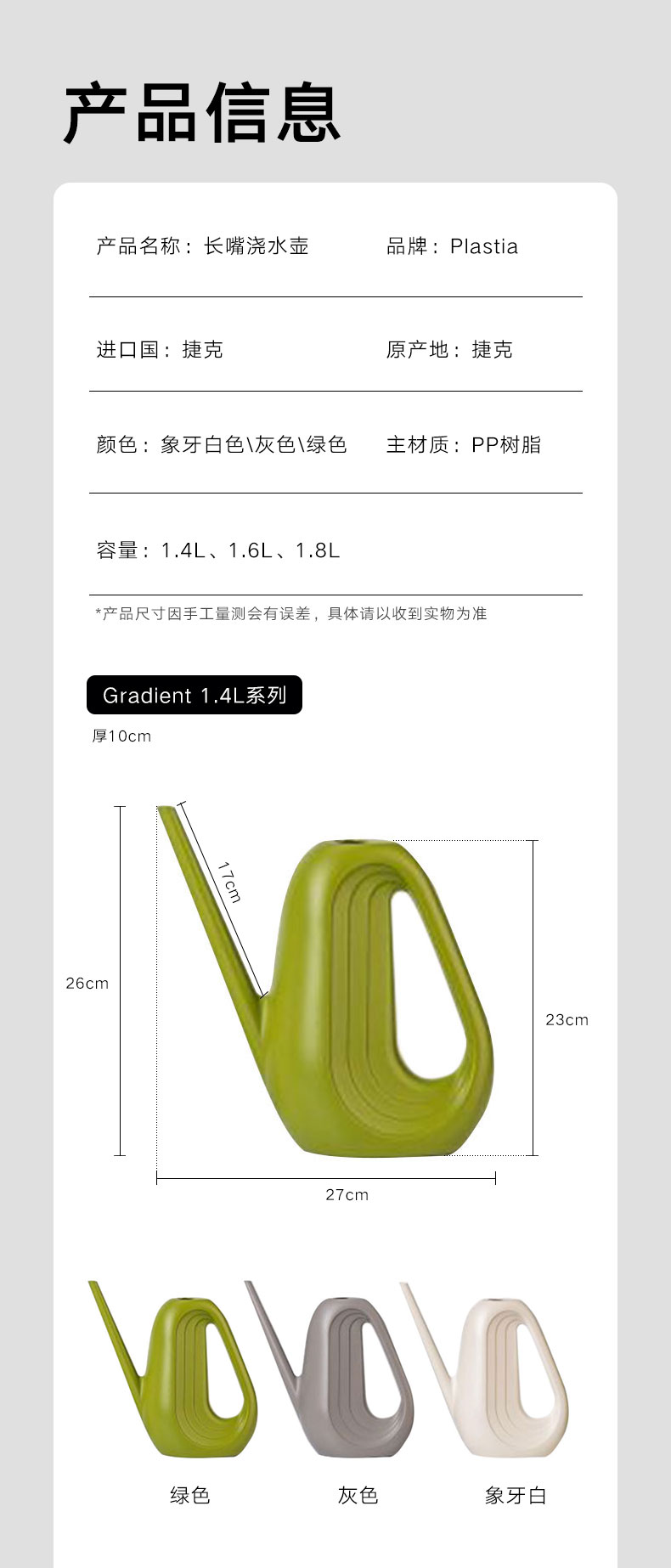 长嘴浇水壶 灰色 Gradient 1.4L