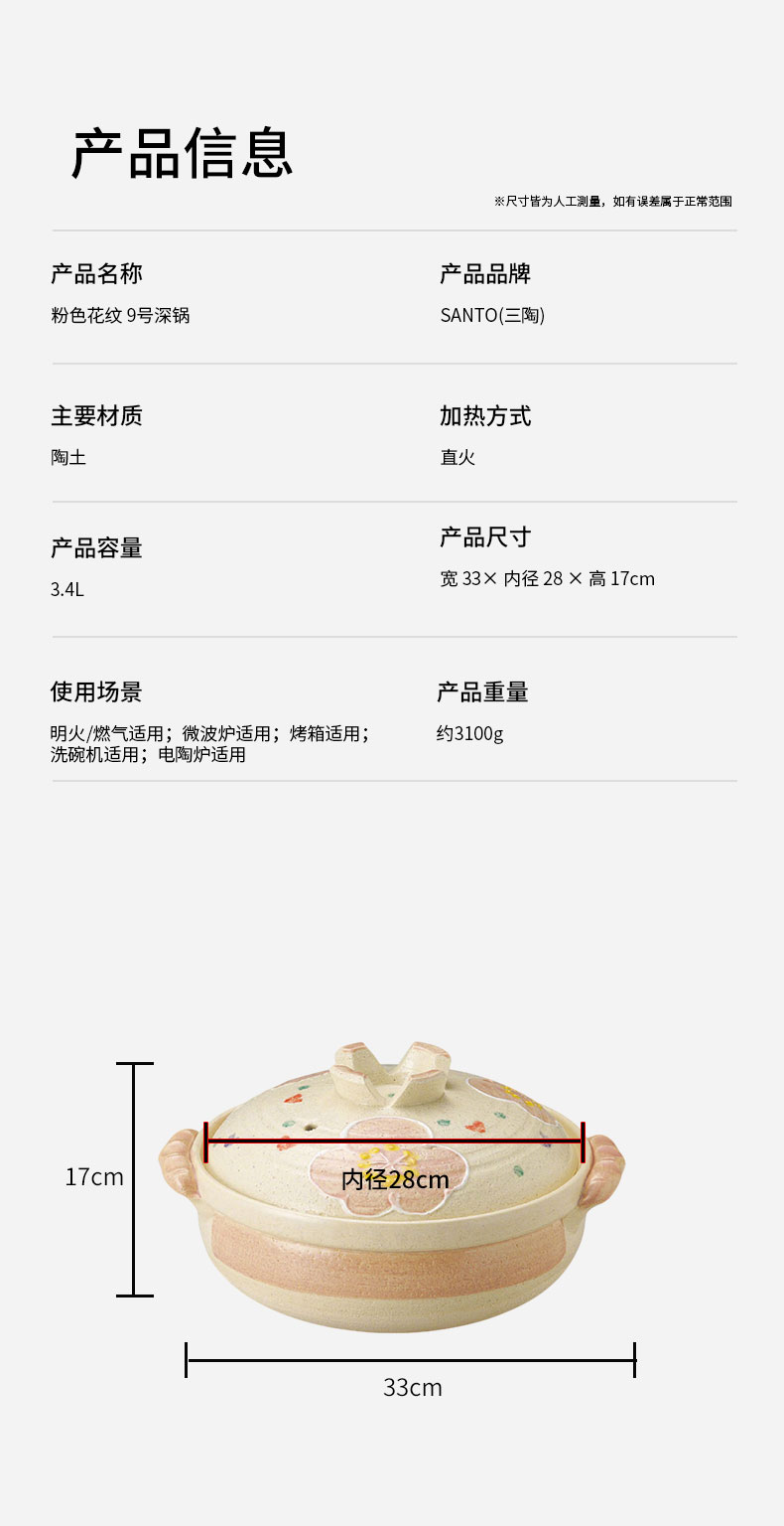 粉色花纹 9号深锅 3.4L 28cm×H11cm