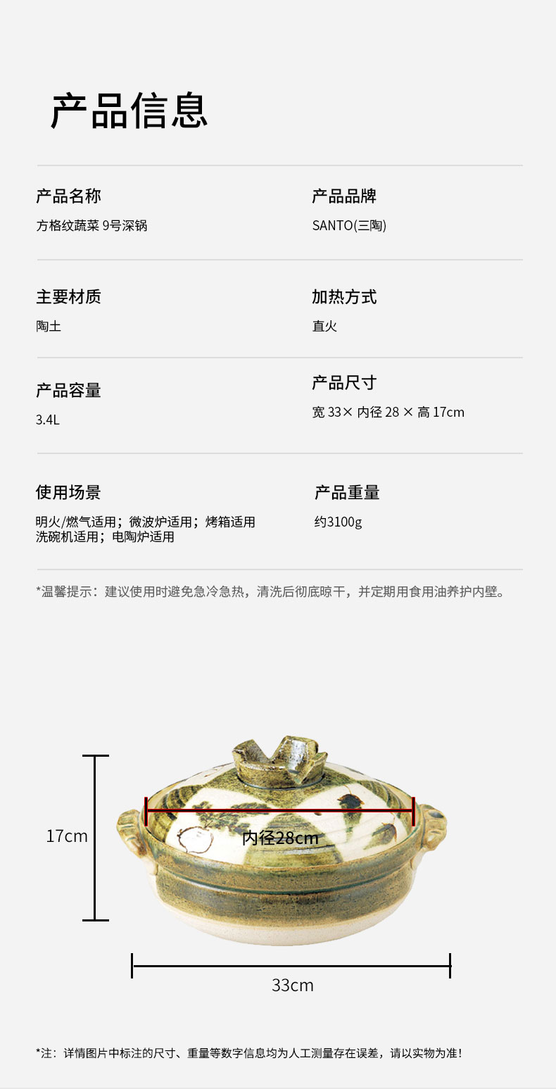 方格纹蔬菜 9号深锅3.4L 28cm×H11cm