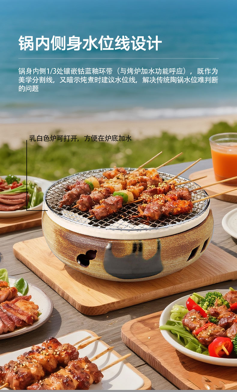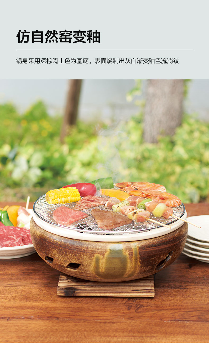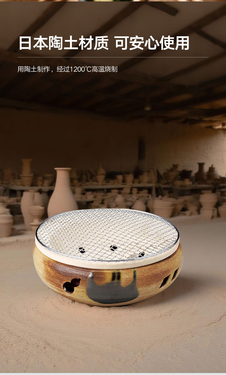 伊势陶土烤炉 10号 29.5cmx H11.5cm(附金属网和底座)