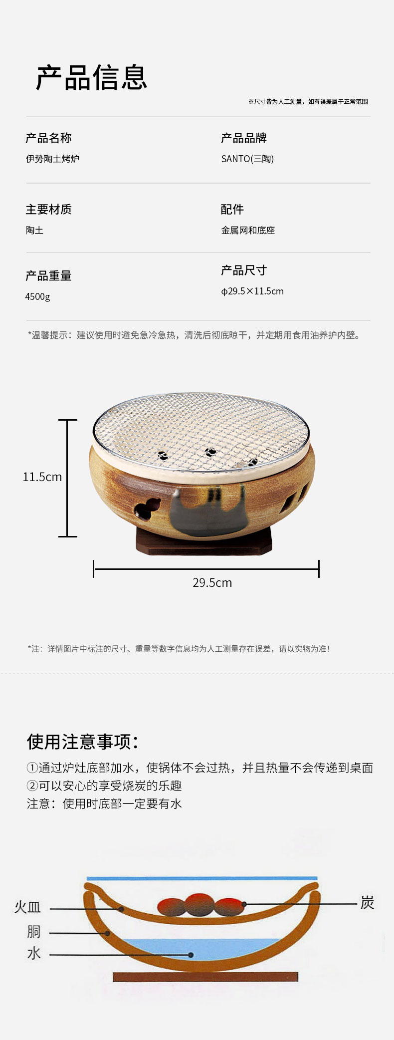 伊势陶土烤炉 10号 29.5cmx H11.5cm(附金属网和底座)