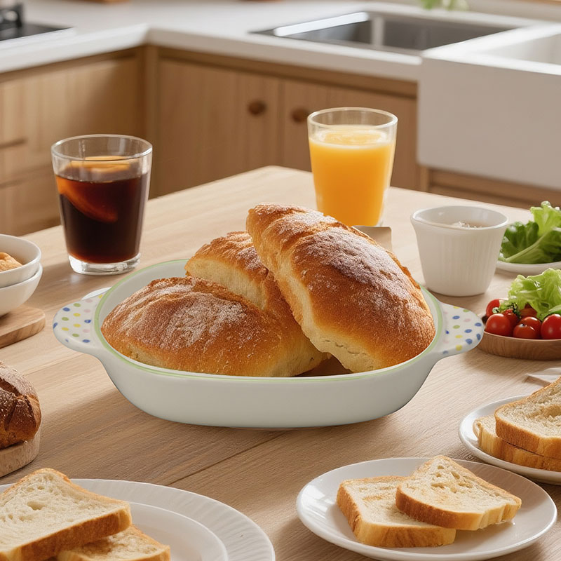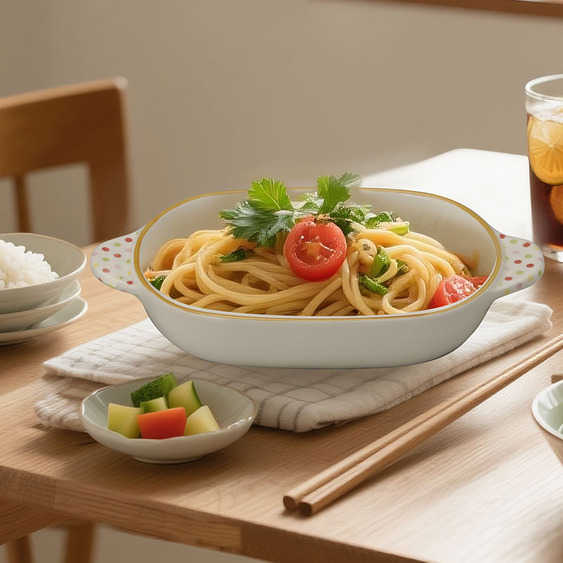 波点焗烤盘 橙色 方形 22×13×3.5㎝