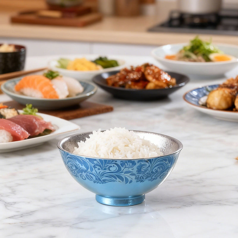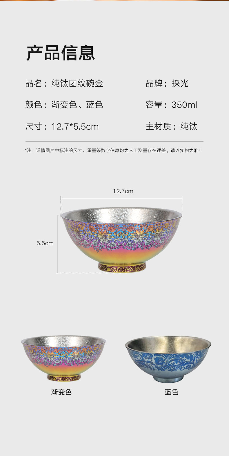 纯钛团纹碗蓝色 350ml