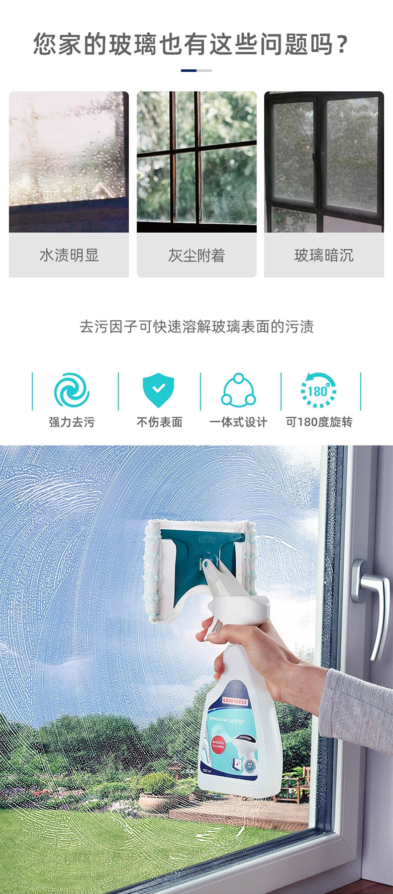 玻璃喷雾清洁剂 配玻璃擦头 500ml