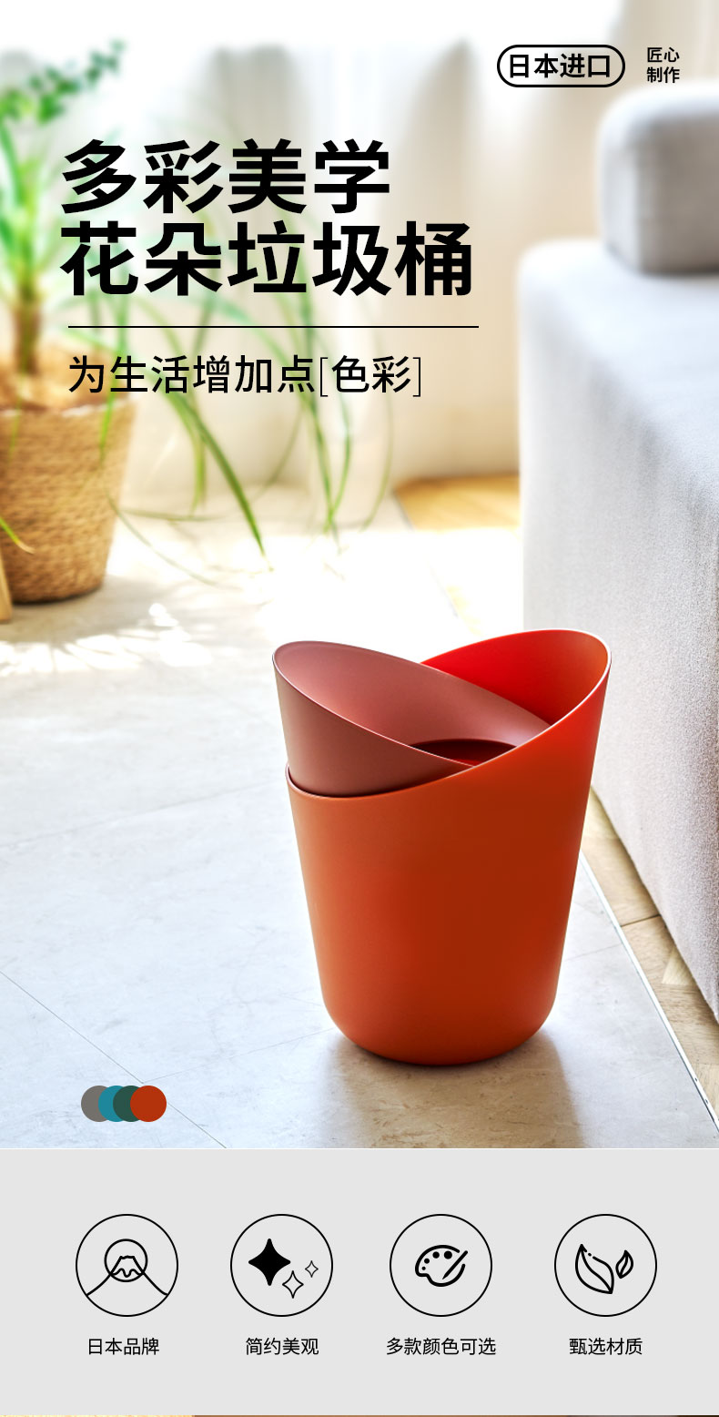 花朵垃圾桶6L 橘色