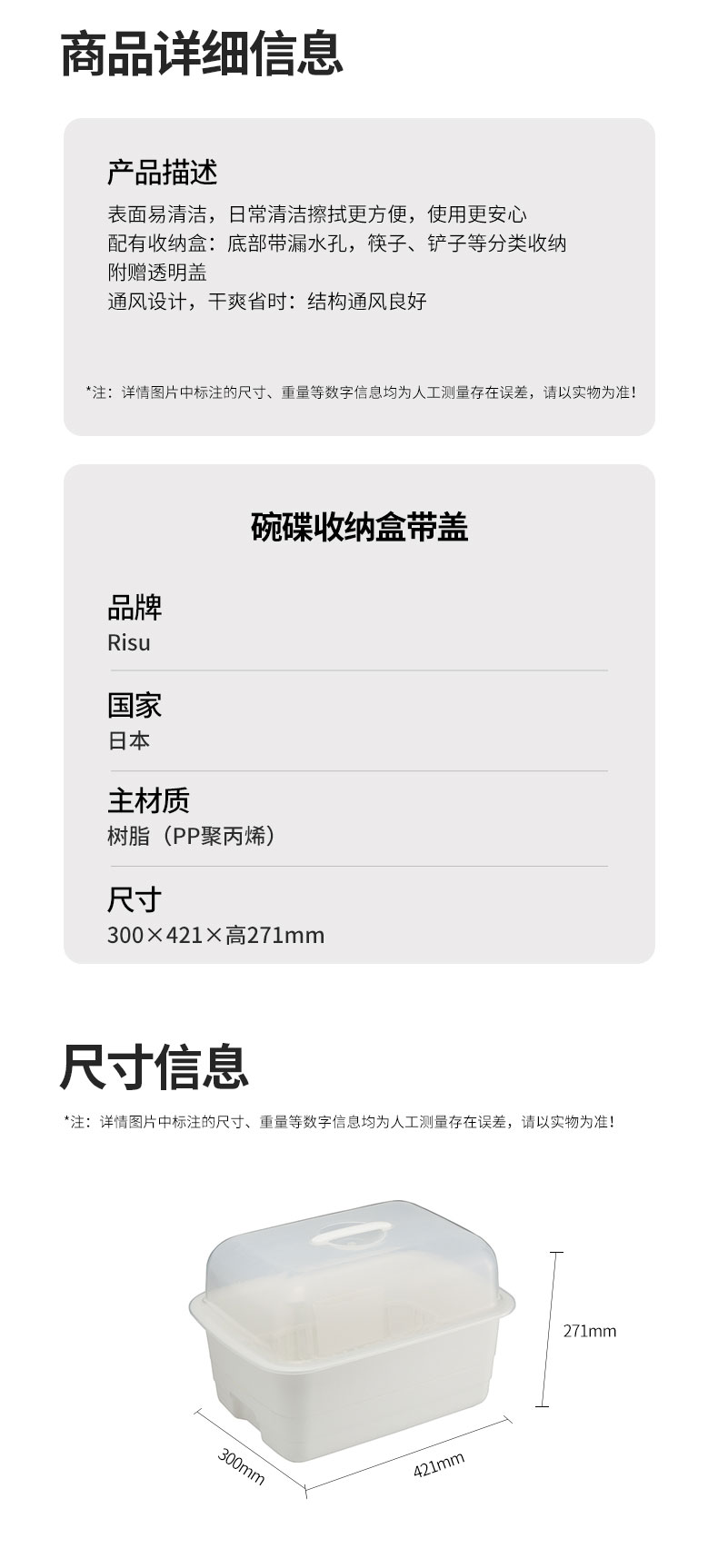 碗碟收纳盒带盖 300×421×271h