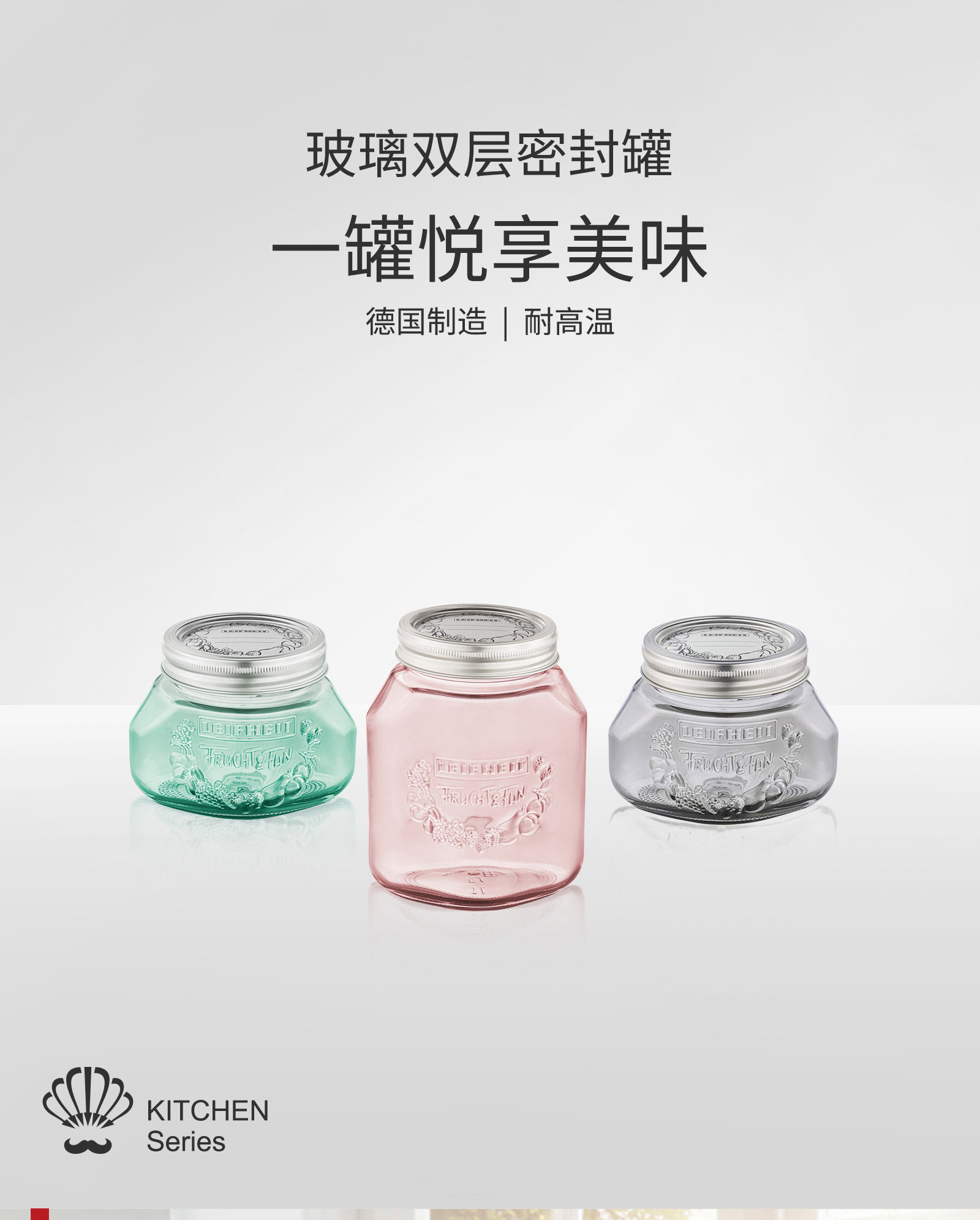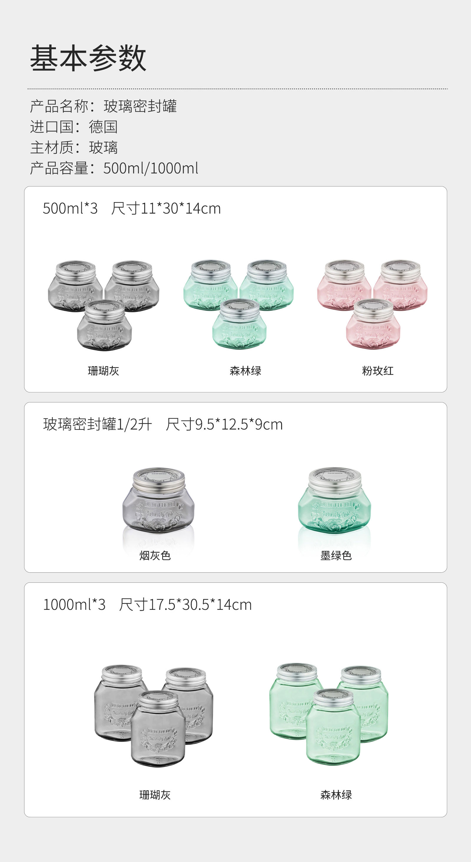 玻璃双层密封罐套装(珊瑚灰500ml*3)