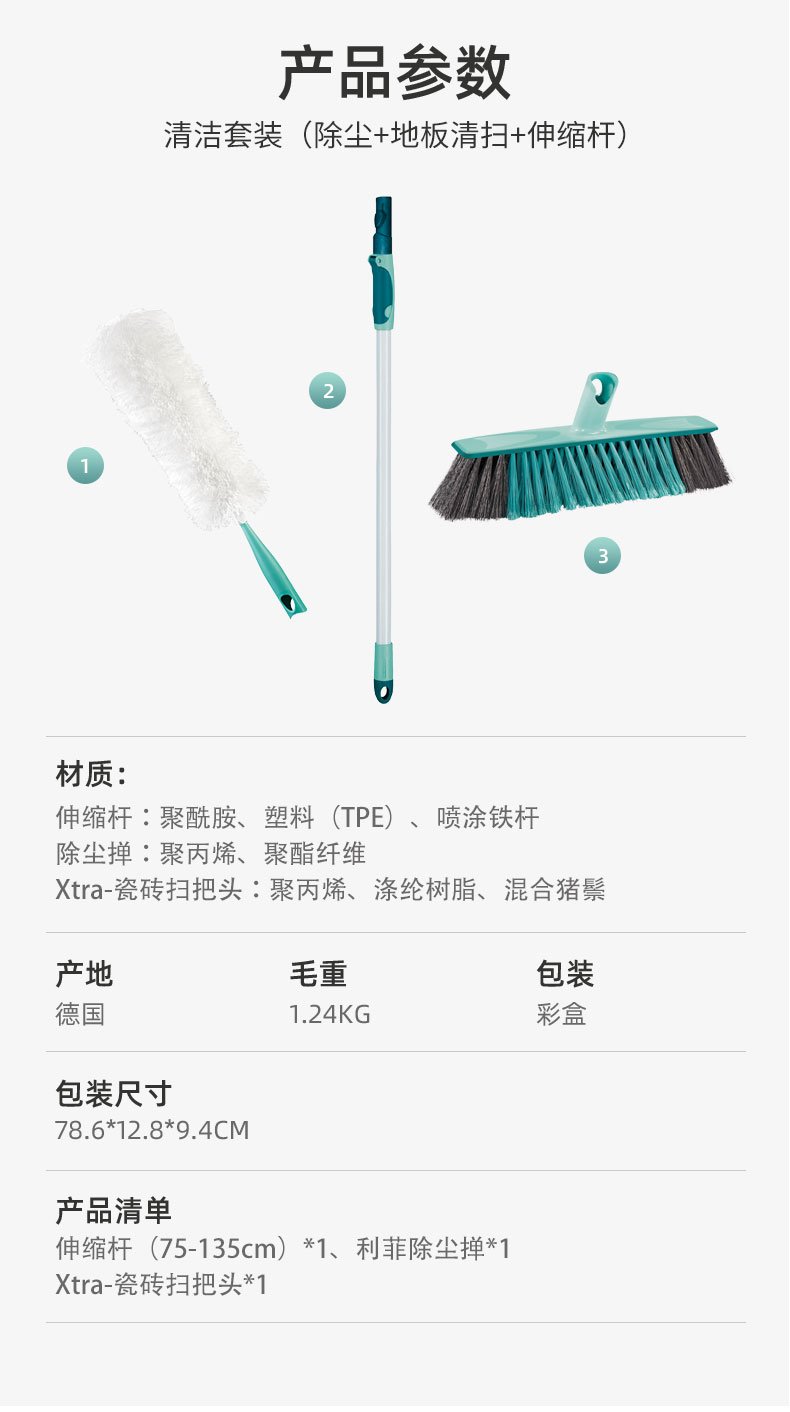 清洁套装(除尘+地板清扫+伸缩杆)