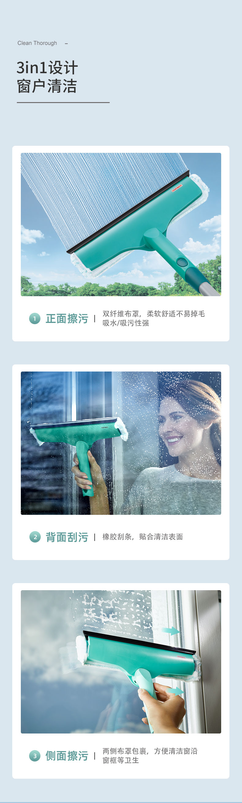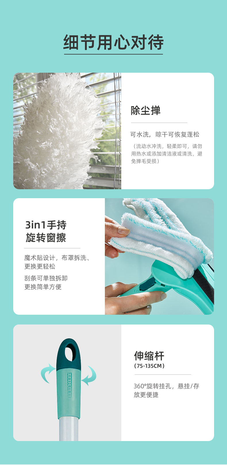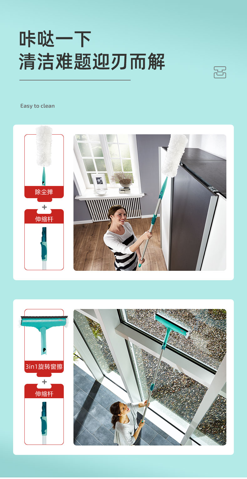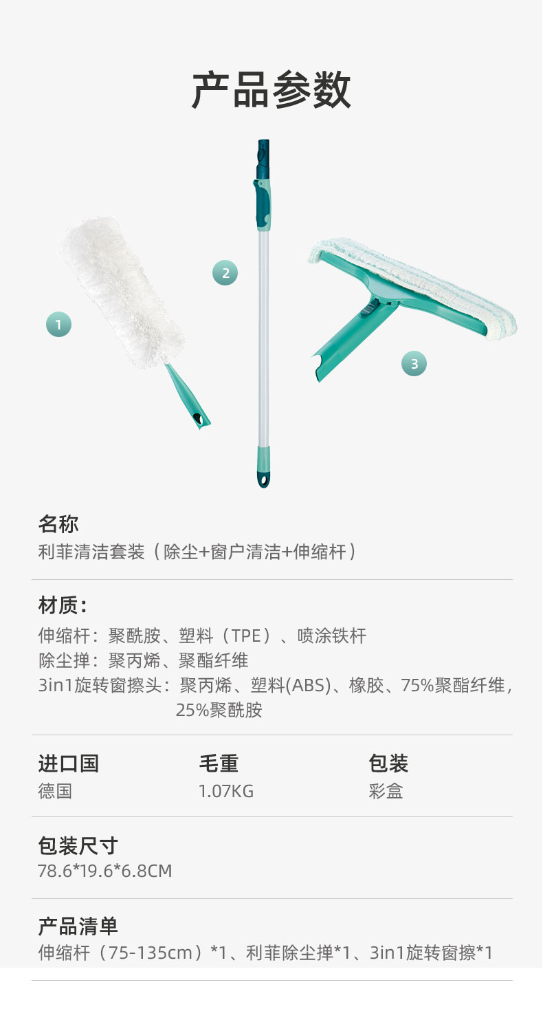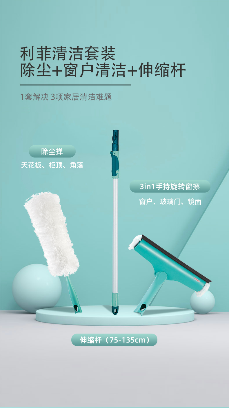 利菲清洁套装(除尘+窗户清洁+伸缩杆)