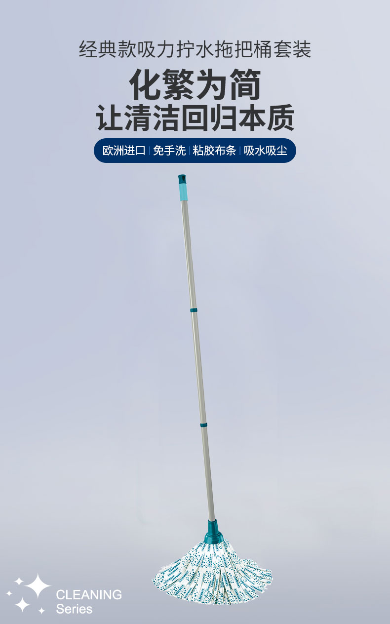 经典款超强吸力拧水拖把桶套装(粘胶纤维)