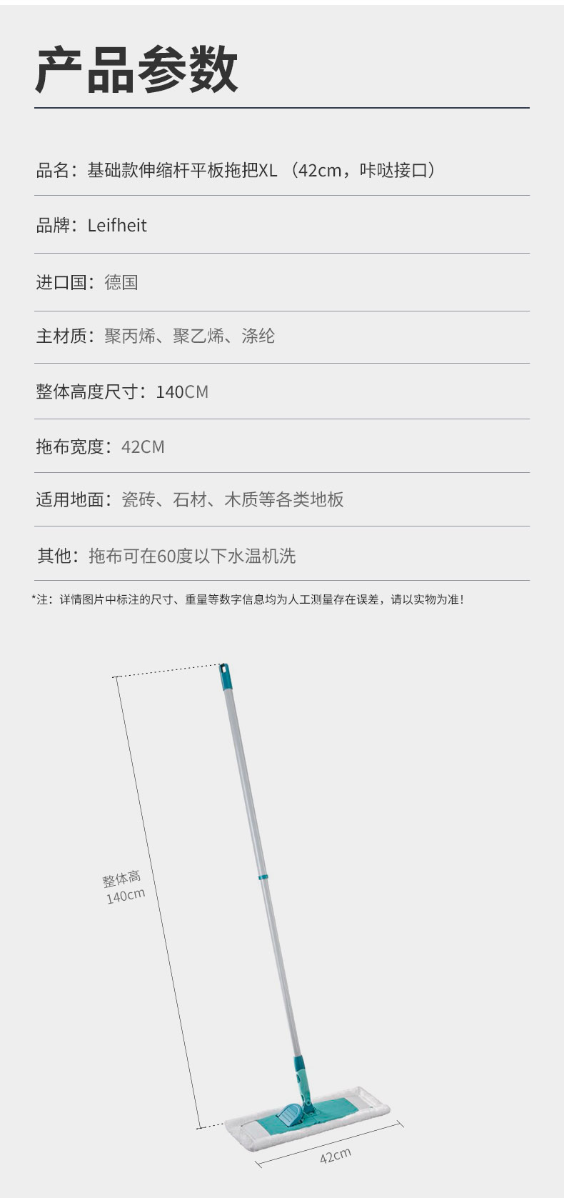 基础款伸缩杆平板拖把XL (42cm,咔哒接口)