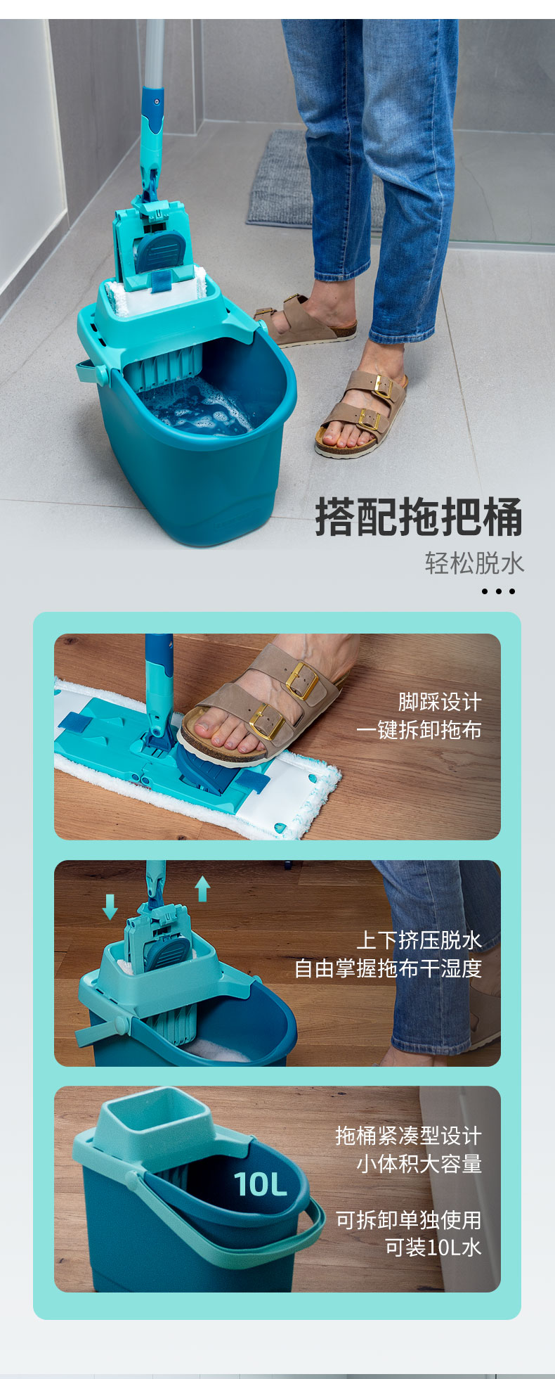 Power Clean-平板拖把M(33cm,双纤维拖布,直杆)