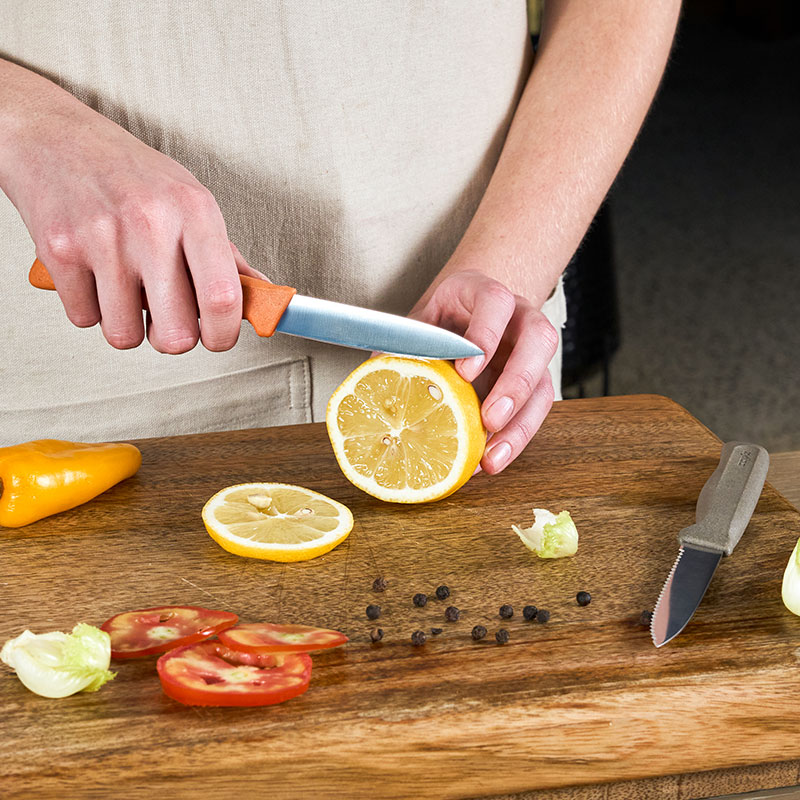 12 x 0.8 x 24.5 cm 锯齿形水果刀 (100毫米/3.94“)和水果刀(90毫米/3.54”)。 包括保护套。