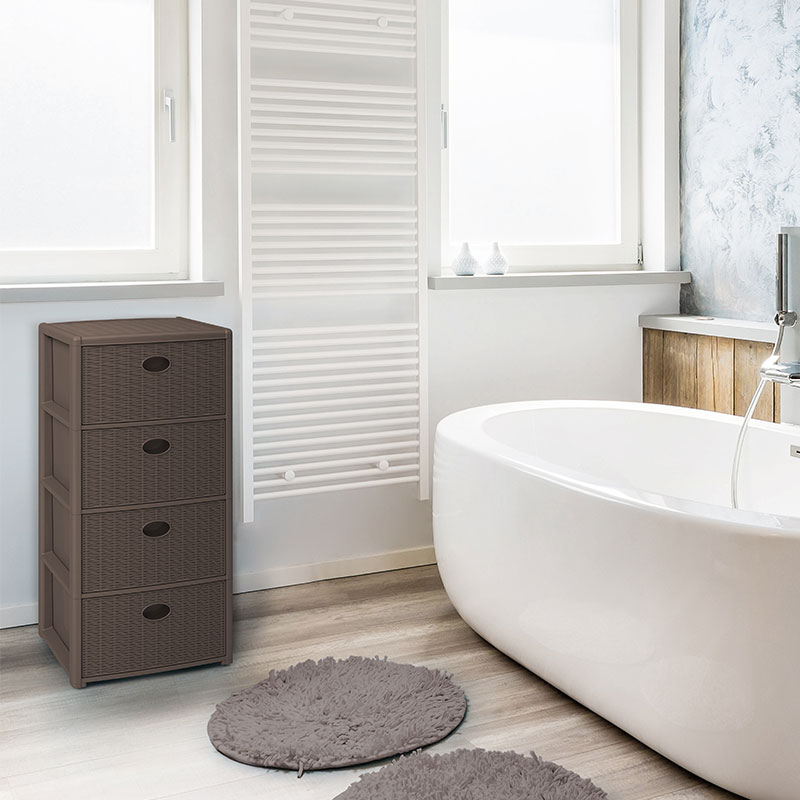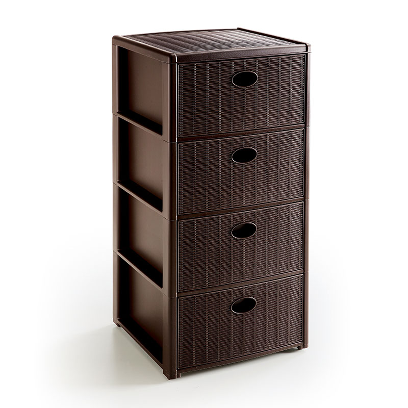 藤编整体收纳柜 四层 深棕色