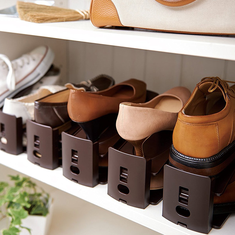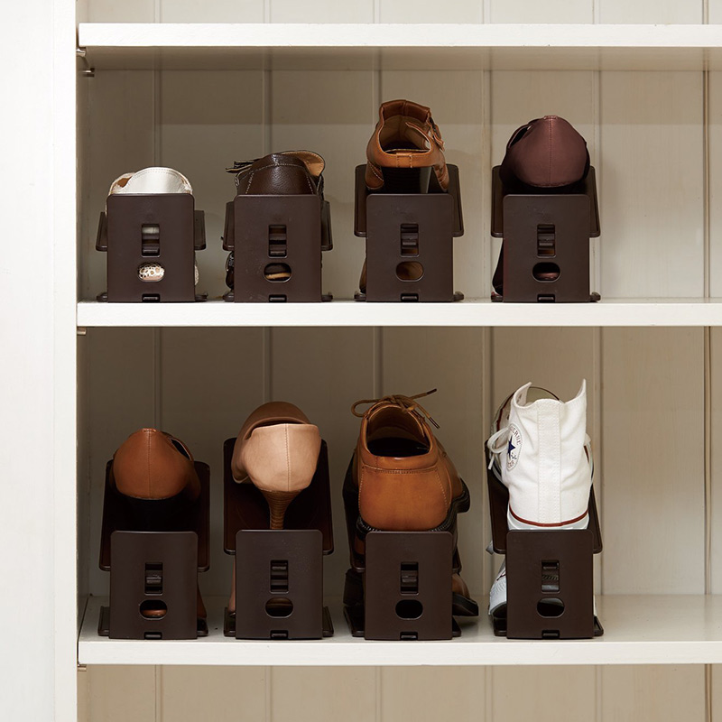 鞋整理架 可调节高度 6组 褐色 W110*D105*H306mm
