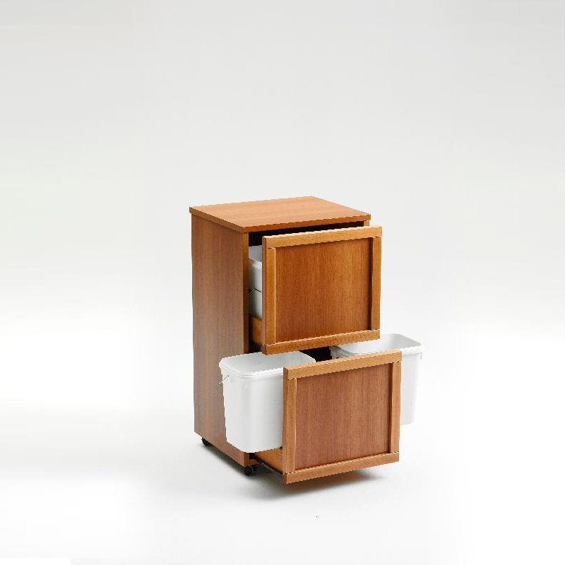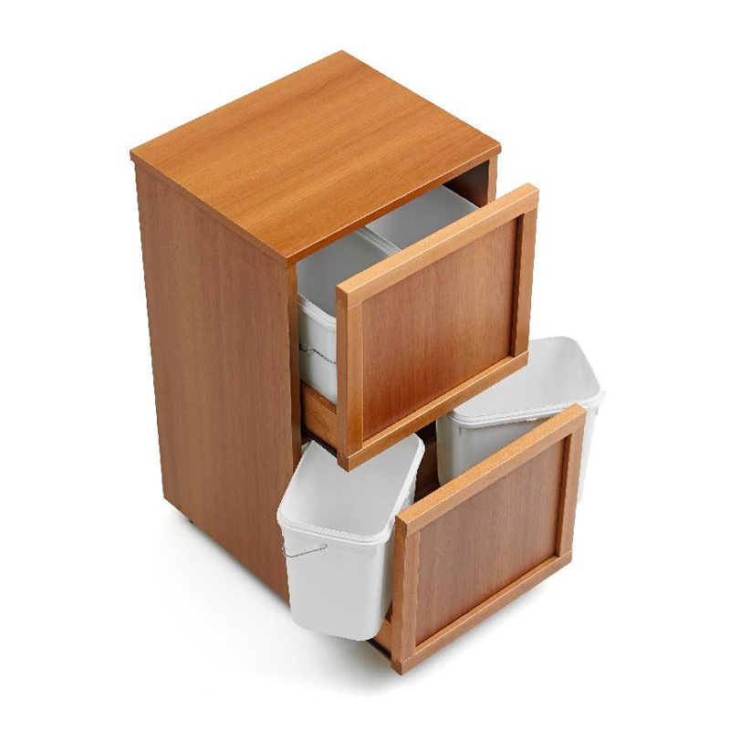 木质双层分类垃圾桶 四内桶 樱桃木色
