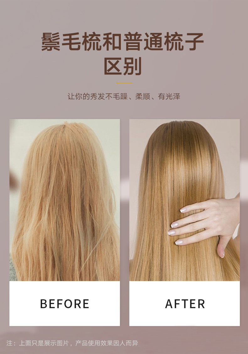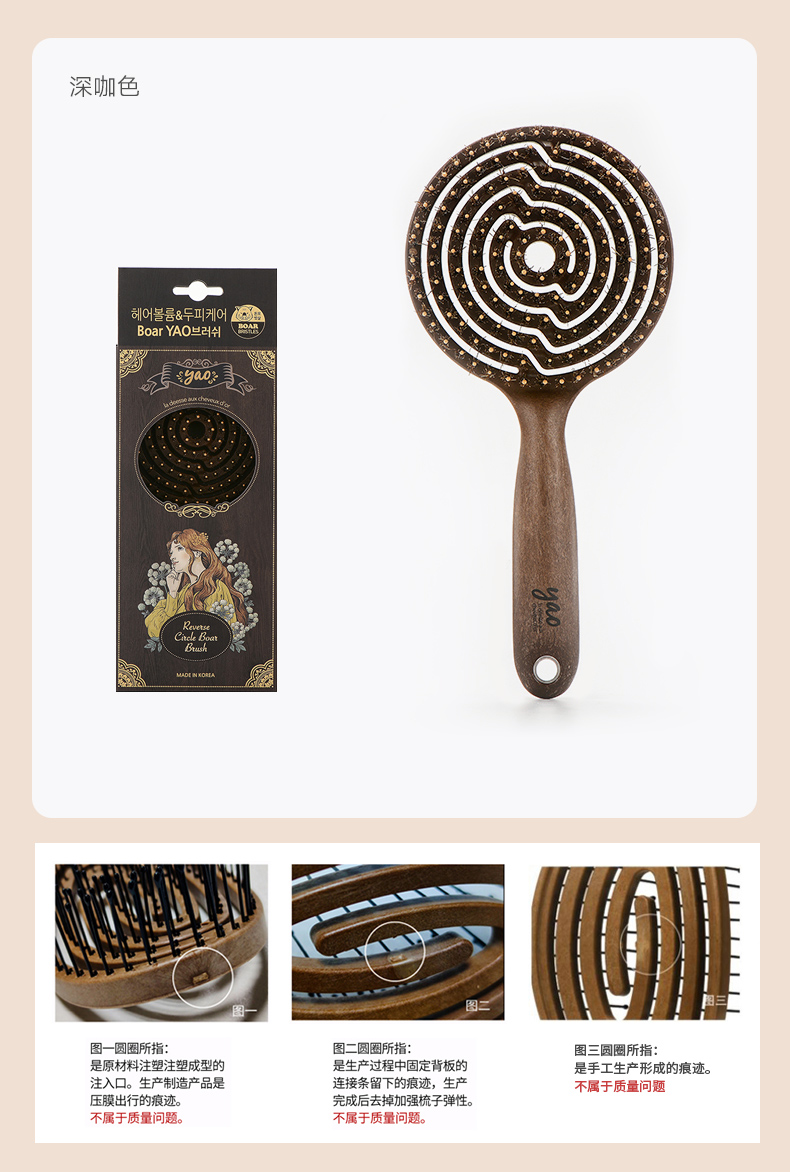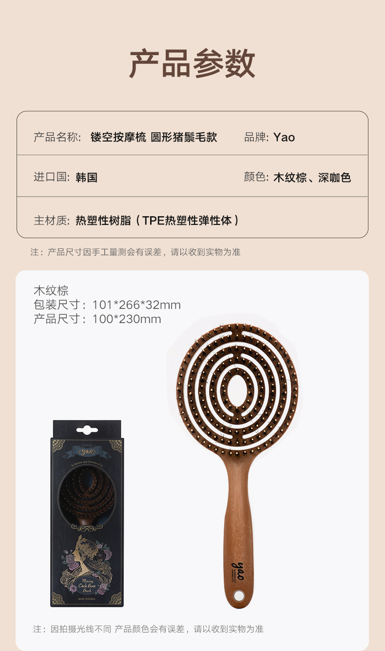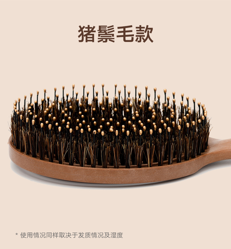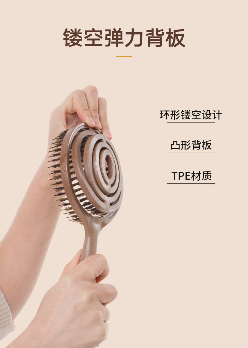 镂空按摩梳 圆形猪鬃毛款 木纹棕